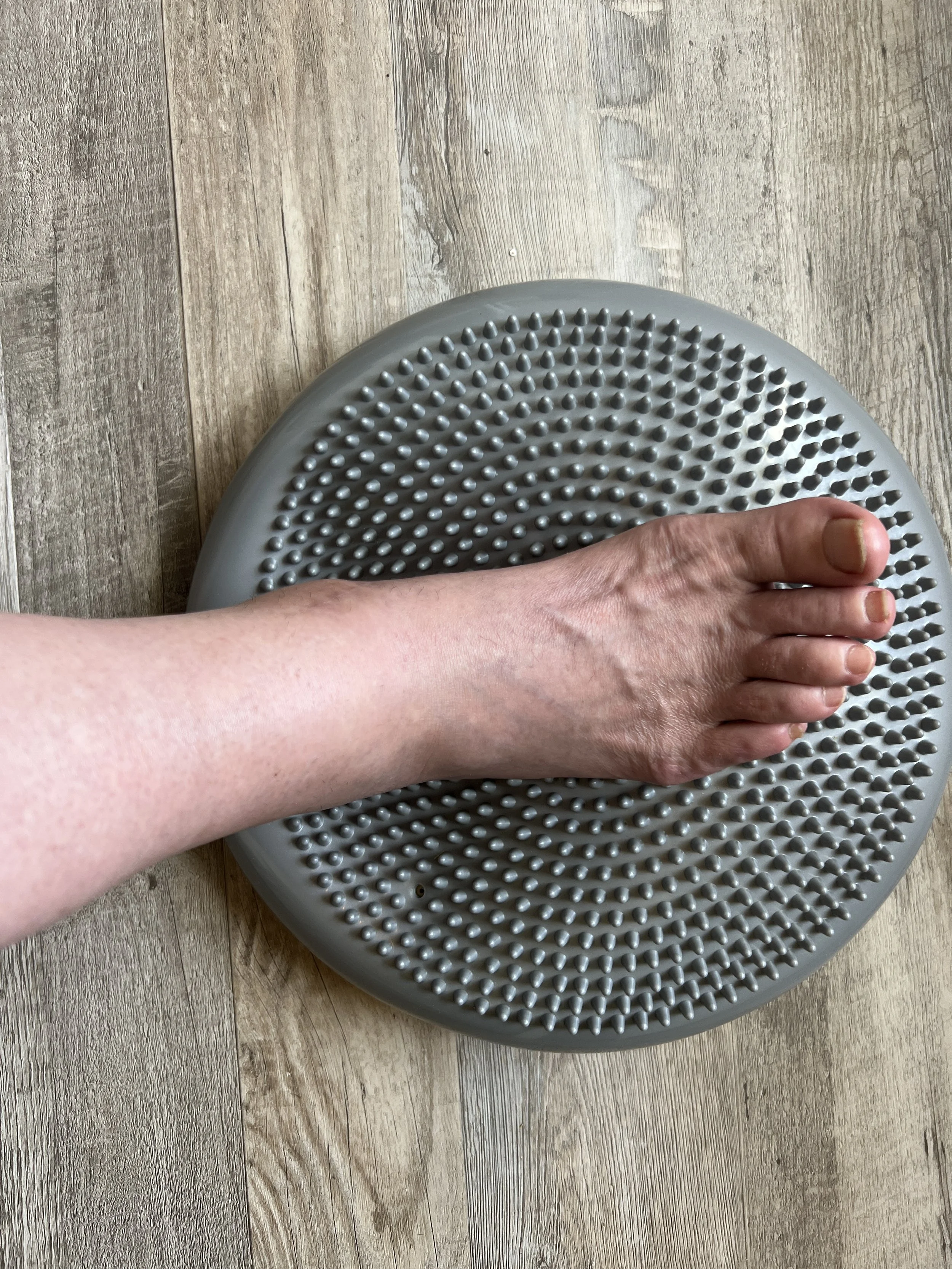 I was introduced to the Balance Disc at a physical therapy session, and my therapist suggested I buy one to put under my desk, so I could exercise my ankle while I work. They’re inexpensive—less than $20—and easy to use.
